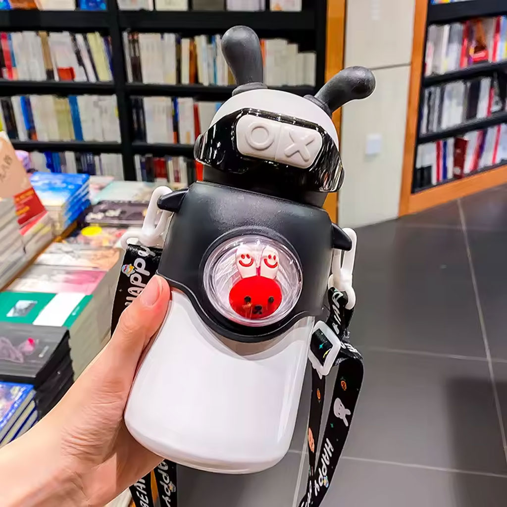 Matériau de qualité supérieure : Fabriquée en acier inoxydable 316, cette bouteille est robuste, résistante à la rouille, et garantit une utilisation longue durée.Isolation thermique : Grâce à son double paroi isotherme, elle garde les boissons chaudes ou froides pendant de nombreuses heures, idéale pour les journées à l’école ou les sorties en famille.Capacité de 500 ml : Sa taille parfaite permet de transporter une quantité suffisante de boisson pour les enfants sans être encombrante.Conception pratique : Équipée d’une paille intégrée, elle facilite l’utilisation pour les enfants, rendant la boisson plus agréable et sans déversement.Motif ludique : Le design adorable de lapin attire l’attention et encourage les enfants à rester hydratés tout au long de la journée.