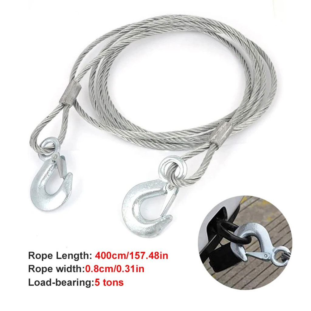✔️ قوة تحمل عالية : مصنوع من فولاذ عالي الجودة، متين وقادر على تحمل وزن يصل إلى 5 طن بكل أمان. طول الحبل 4 أمتار (13.4 قدم)، مما يتيح سهولة السحب حتى في الظروف الصعبة.