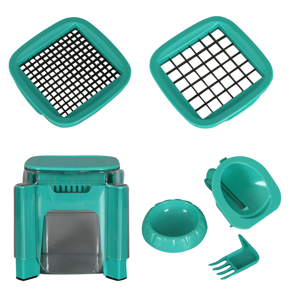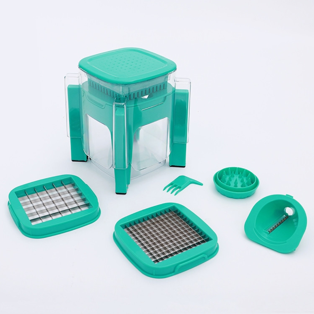 La conception spéciale en forme de carré offre une prise ferme et réduit considérablement les accidents.plusieurs lames qui s’adaptent à de nombreux styles de coupe.Passe au lave-vaisselle et facile à nettoyer.Les fruits et légumes sont finement hachés.un bac de vidange au bas du broyeur.