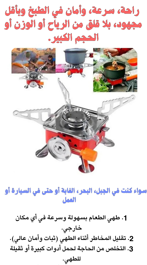 Mini réchaud à gaz pliable en métal pour camping – موقد غاز محمول للتخيم و المنزل و العمل