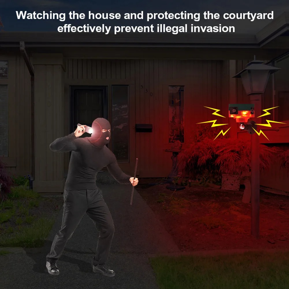 【Sondeur puissant】 L’alarme du capteur de mouvement jusqu’à 130 décibels est suffisante pour effrayer l’impopulaire « explorateur », l’alarme du détecteur de mouvement est constituée de 6 perles de lampe rouge LED utilisées pour un flash lumineux. La combinaison d’un voyant stroboscopique et d’un klaxon permet la transmission simultanée de signaux visuels et sonores pour un meilleur avertissement.【Personnalisez la voix de l’alarme】 Le capteur de mouvement sensible propose 13 types de musique par défaut. La lampe d’alarme solaire à télécommande permet de personnaliser la fonction vocale d’alarme, qui peut enregistrer n’importe quel son que nous voulons, enregistrer 20 secondes à la fois et le lire deux fois. Il peut être utilisé comme haut-parleur de bienvenue lors de fêtes telles que « Bienvenue », ou comme haut-parleur d’avertissement tel que « Veuillez rester en dehors de notre cour » (c’est une très bonne fonctionnalité !)【Chargement solaire et USB et détecteur de mouvement à 360 °】 Chargement USB comme sauvegarde lors de longs jours de pluie, assurez-vous qu’il fonctionne sans arrêt, lampe d’alarme solaire équipée de 3 détecteurs de mouvement, laissez les animaux ne jamais s’approcher de vos propriétés, quelle que soit la direction dans laquelle ils j’essaye de venir ! Dites adieu aux « explorateurs » indésirables【Télécommande】 L’alarme est équipée d’une télécommande infrarouge. Vous pouvez librement activer le mode d’alarme : ①Alarme 24 heures + LED clignotante ; ②alarme + LED clignotante la nuit ; et veillez par la télécommande et ajustez également les 14 types de musique.【Installation facile et large utilisation】 Le système comprend des supports pour un support mural/base et un support sur tuyau, ce qui le rend facile à installer. Les générateurs de bruit avec capteur de mouvement sont largement utilisés dans les entrepôts, les usines, la sécurité des écoles, les fermes, les vergers, les villas, les jardins, les cours et autres endroits nécessitant une alarme de sécurité.Fonction: